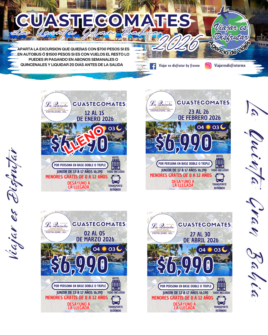 Disfruta de unas vacaciones con hotel todo incluido. Viajar es disfrutar te ofrece el transporte redondo a Cuastecomates, donde menores de 0 a 12 años se hospedan totalmente GRATIS.